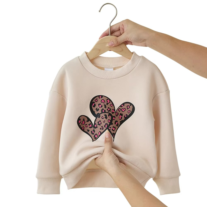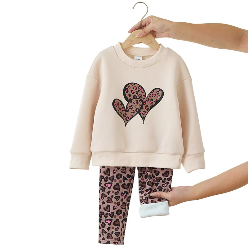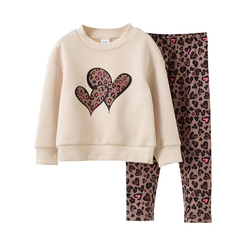 YYO Custom Fashion Design Girls Cute Outfit Two Piece Clothing Set With Leopard Heart Print Pants Autumn Outfit for 2-7Y Kids